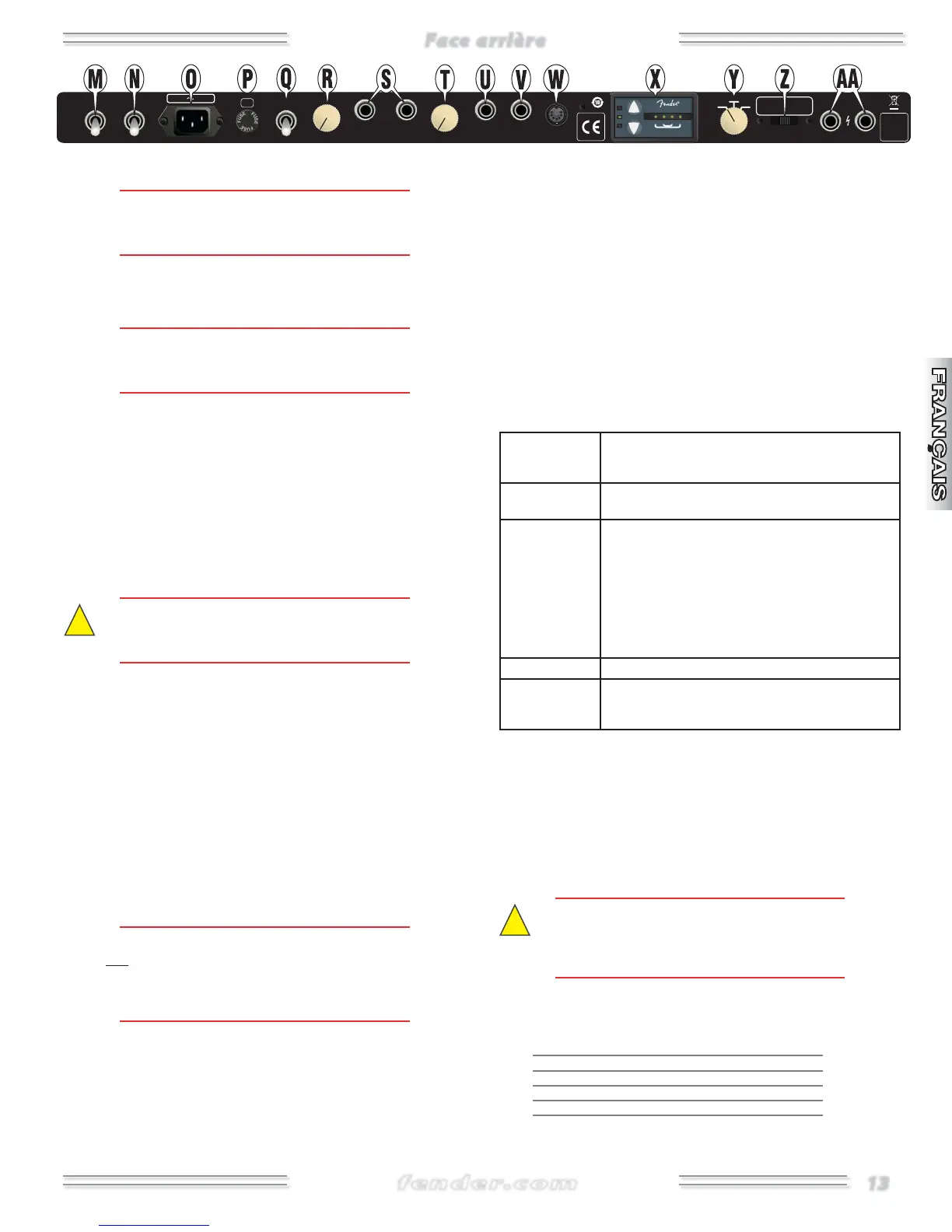 téristiques électriques (sérigraphiées en face arrière de l'amplificateur).