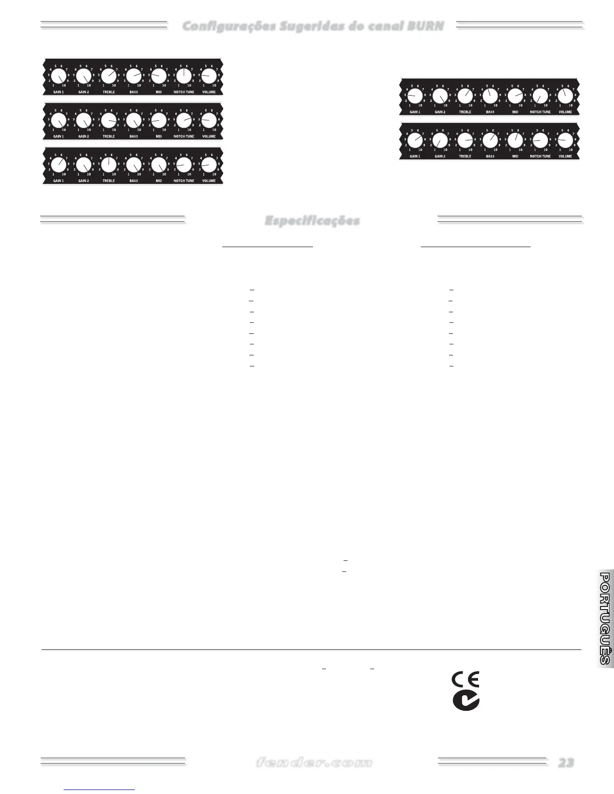 Configurações Sugeridas do canal BURN