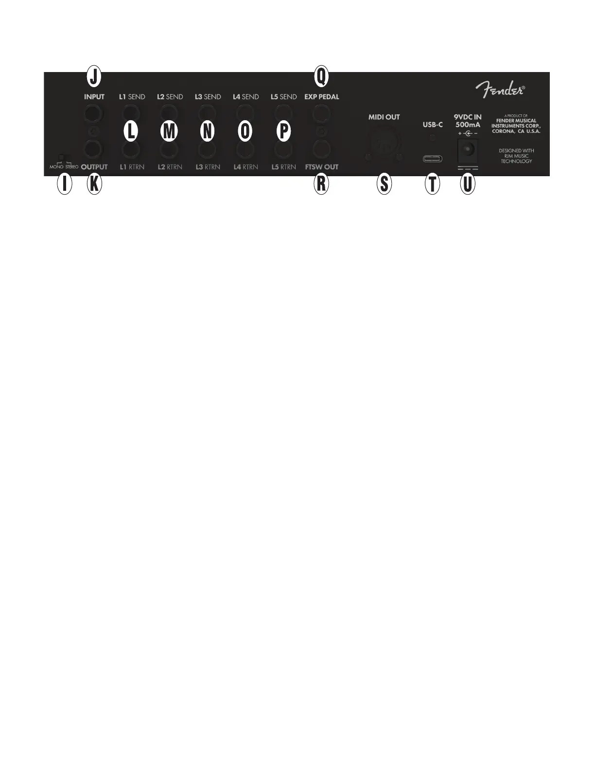 Q. EXP PEDAL: ¼” TRS jack for connecting an expression
