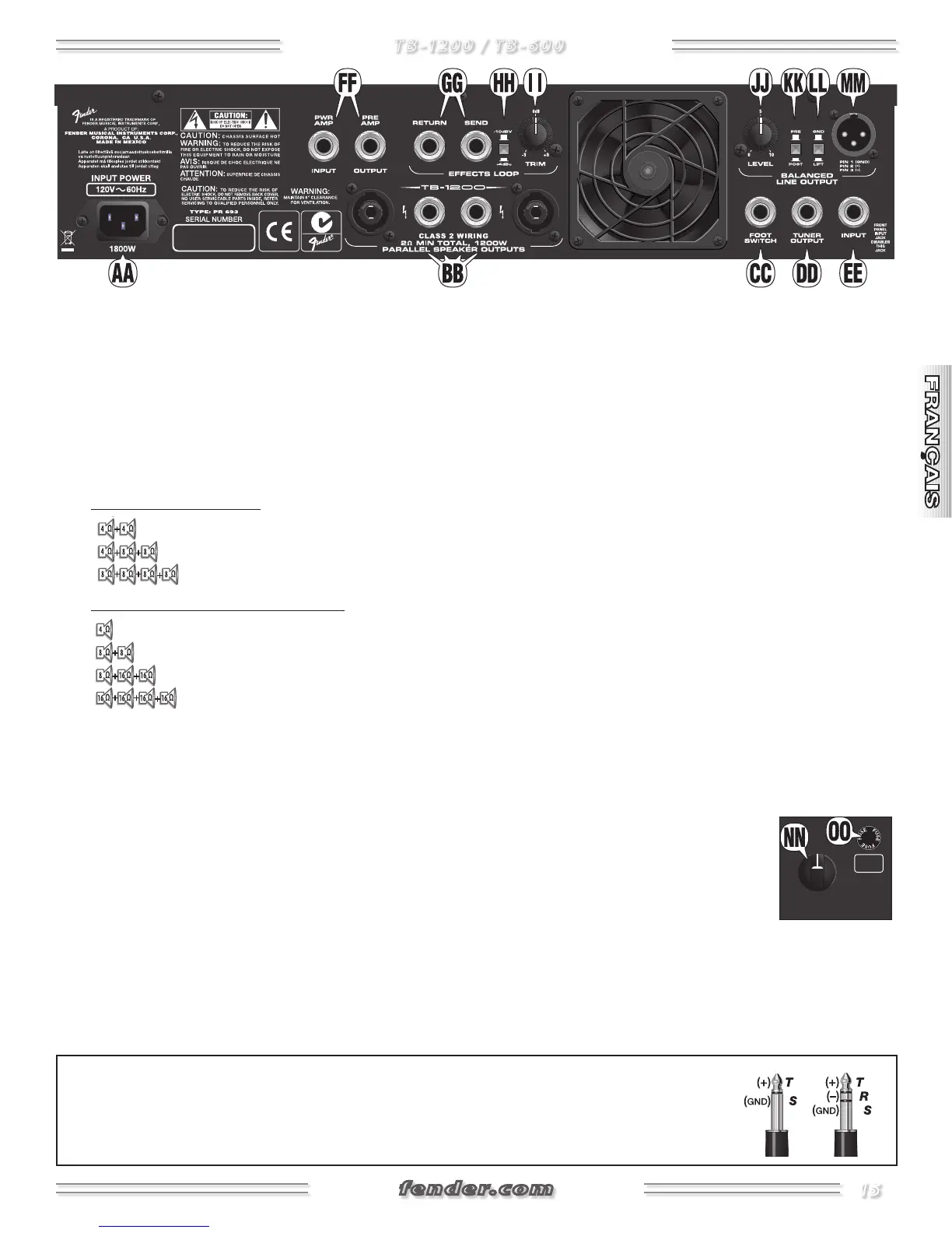 FF. PRE AMP OUT/PWR AMP IN - Si vous utilisez plusieurs