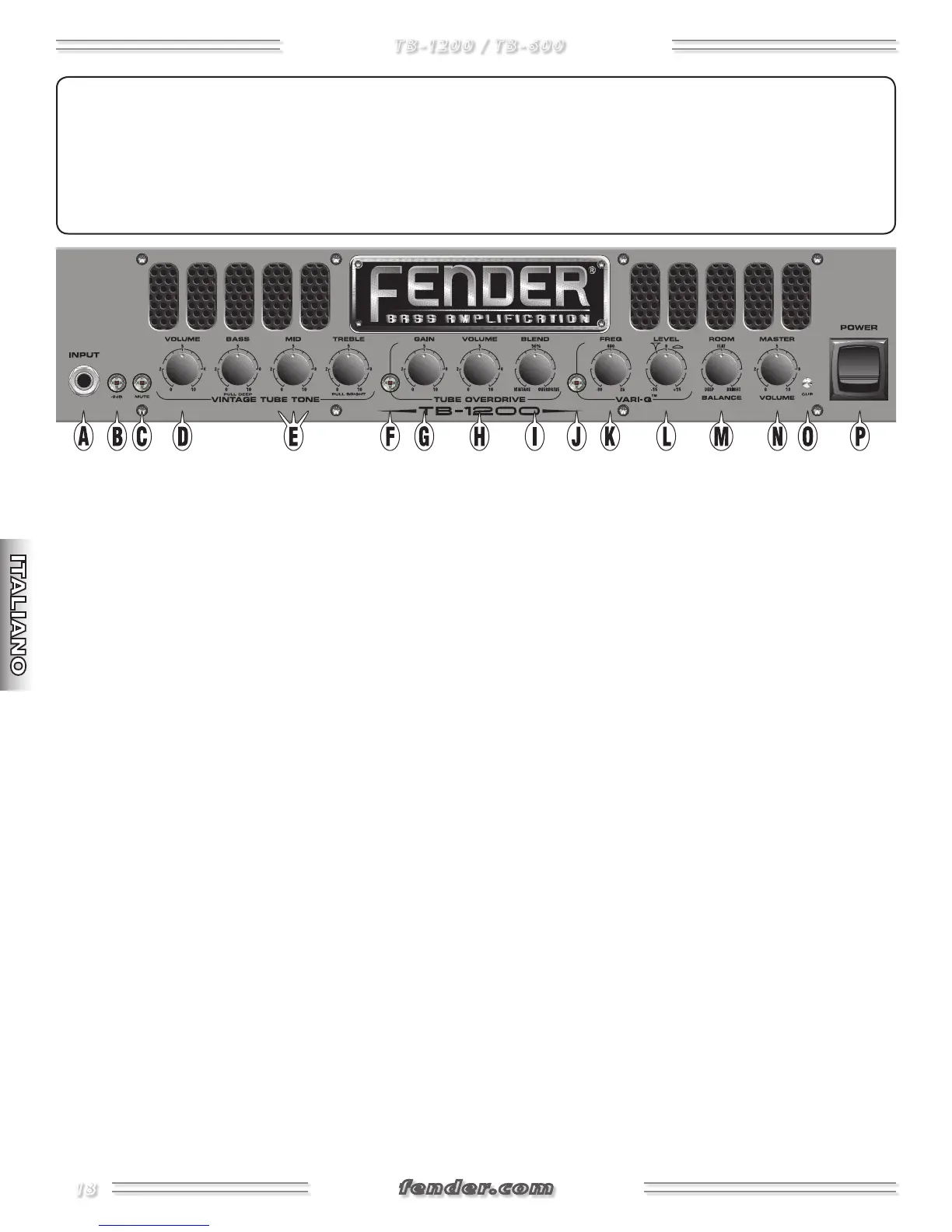 P. POWER - Interruttore che attiva/disattiva l’unità TB-1200/600