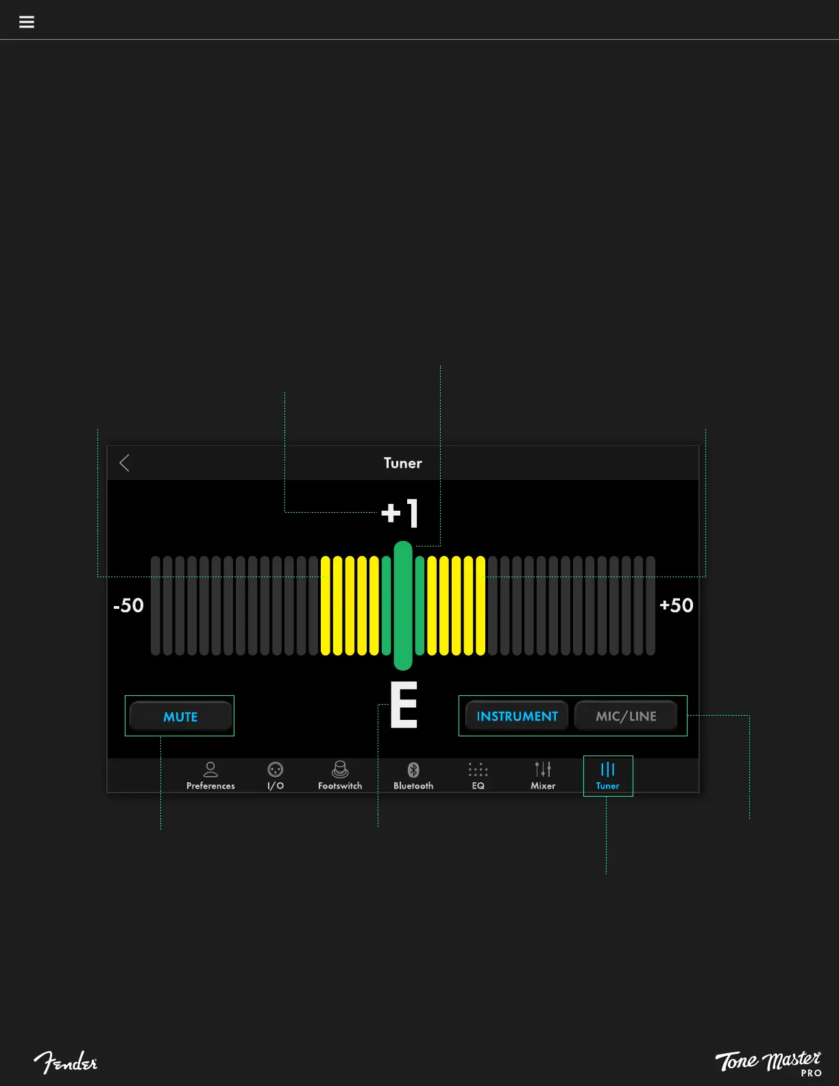 preset or press the EXIT TUNER footswitch to exit the tuner.