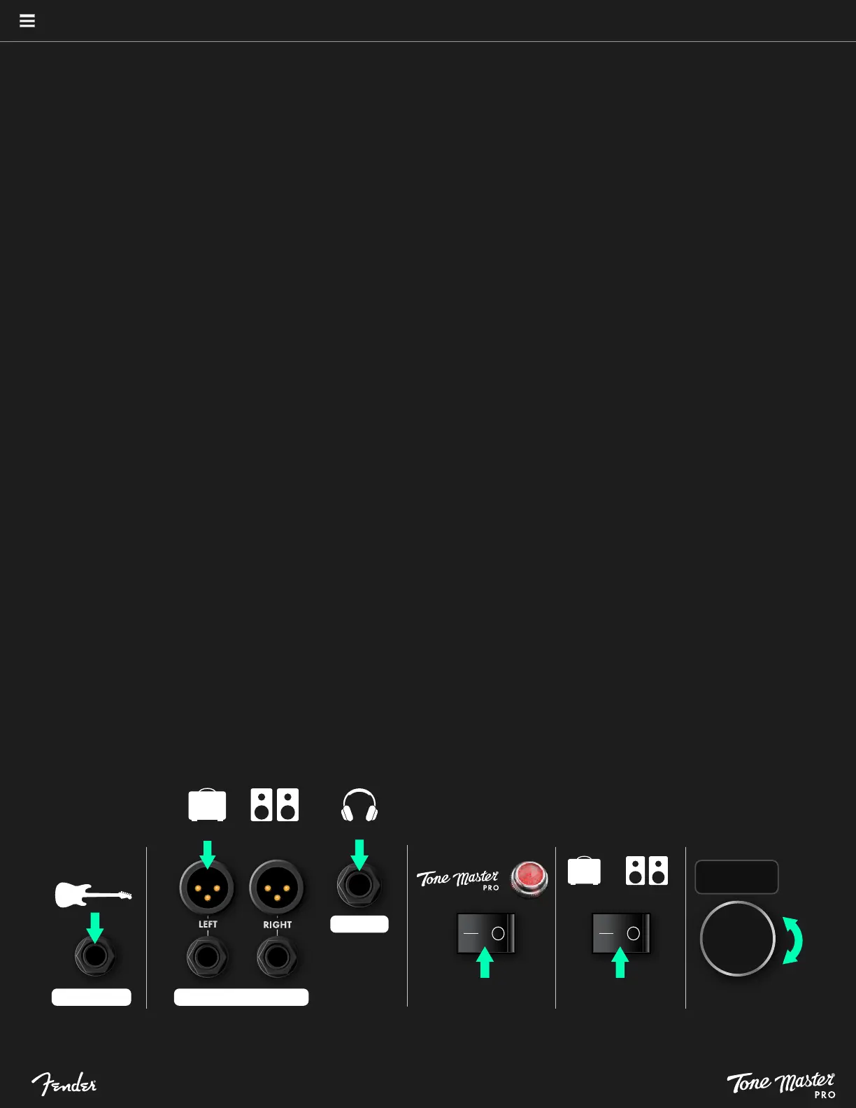 MODE: An operational level at which sounds are created and organized. Tone Master PRO has six modes: My Presets, Favorites, Factory