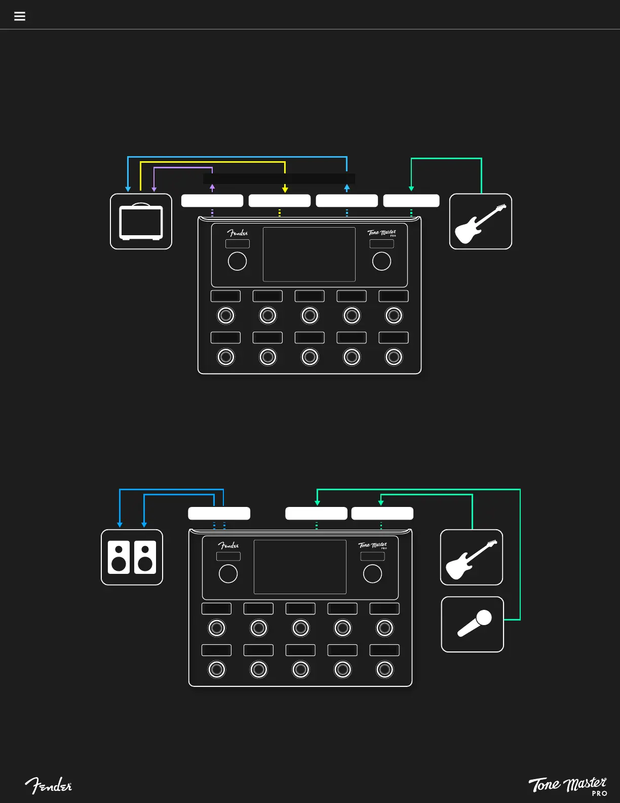 • Set Tone Master PRO rear-panel outputs to line level in Global Settings for optimal signal-to-noise ratio.