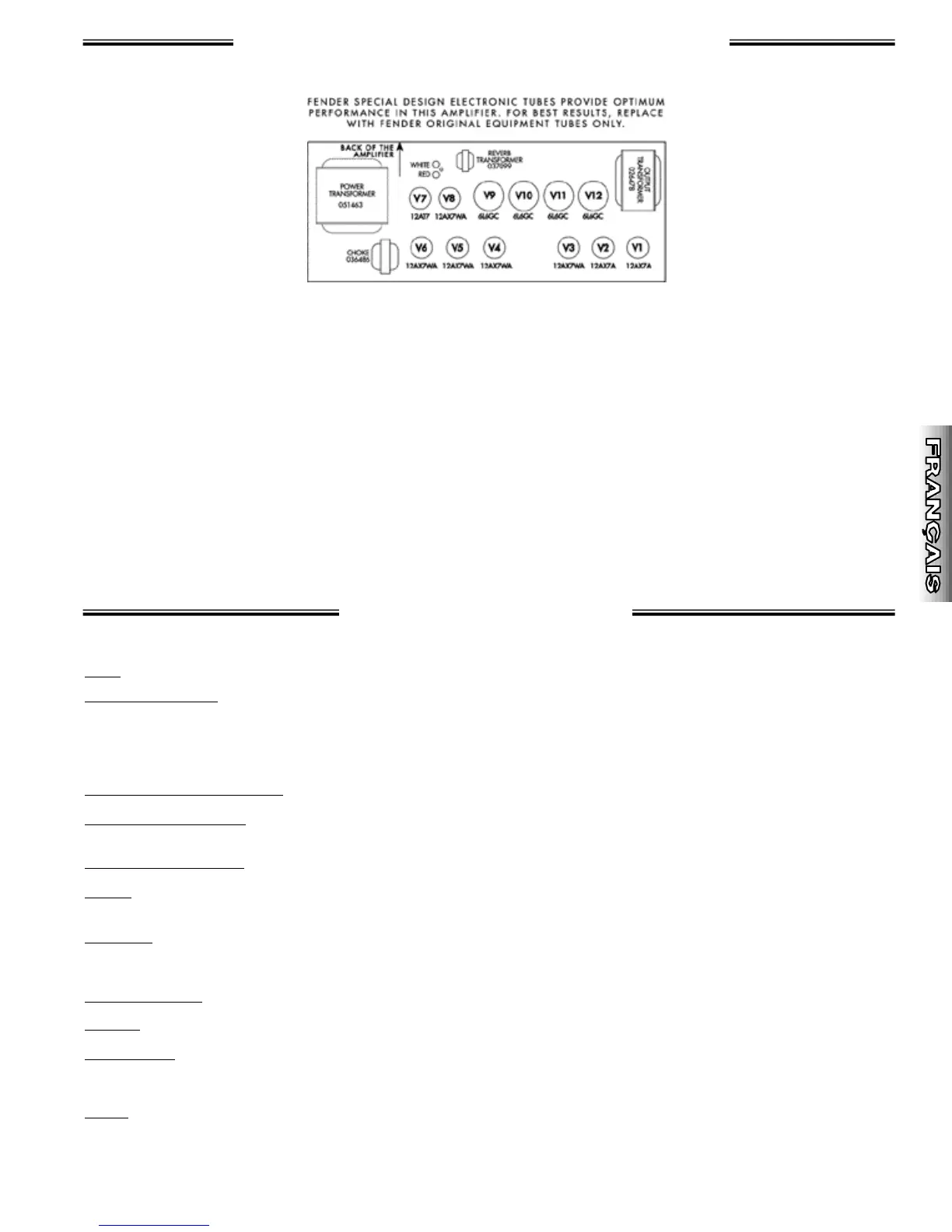 TUBES: Quatre tubes 6L6GC (n° de pièce 053980), deux tubes 12AX7A (n° de pièce 023572),