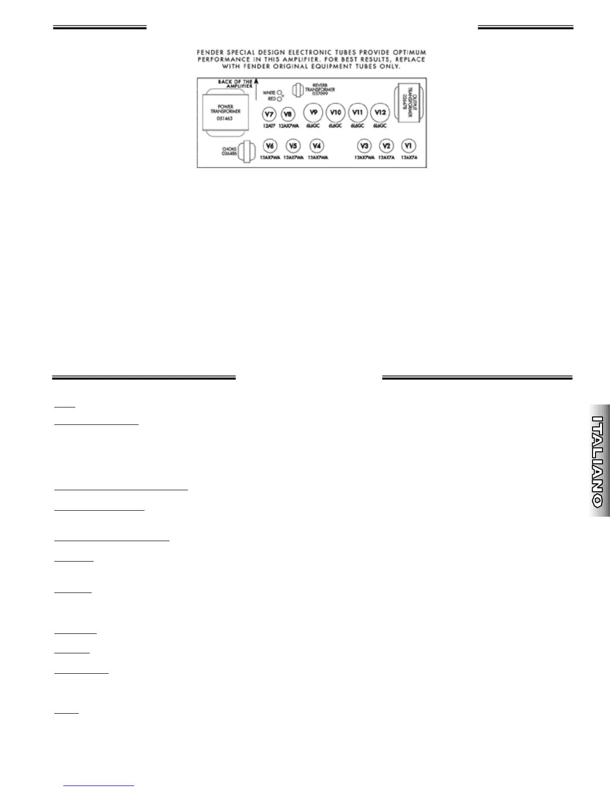 VALVOLE: Quattro 6L6GC (P/N 053980), Due 12AX7A (P/N 023572),