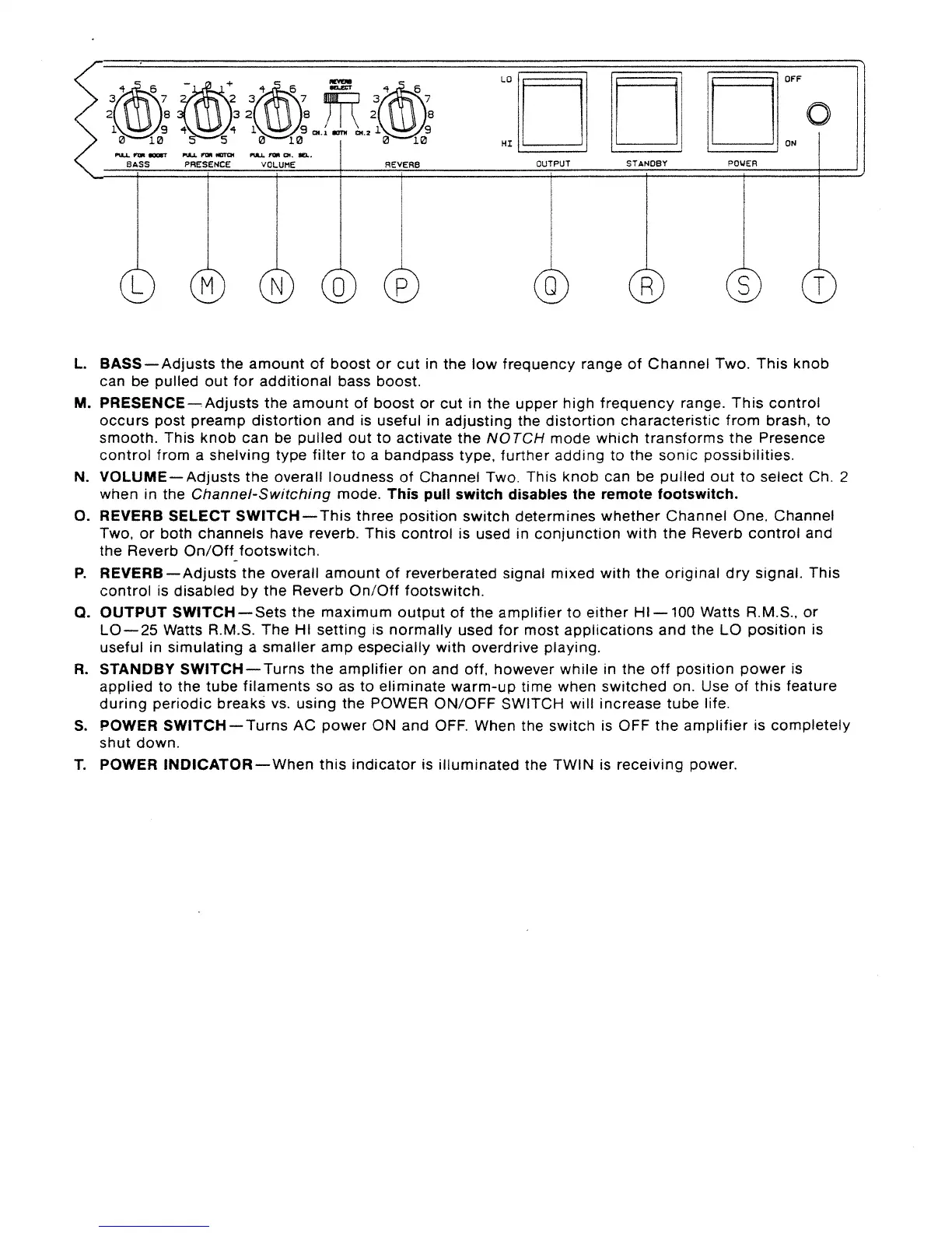 Fender TWIN - Twin Front Panel Functions (Continued); Bass Control (Channel Two); Presence Control; Volume Control (Channel Two)