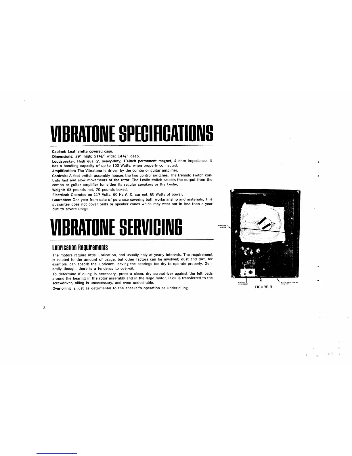 Fender Vibratone - VIBRATONE SPECIFICATIONS; VIBRATONE SERVICING; Lubrication Requirements