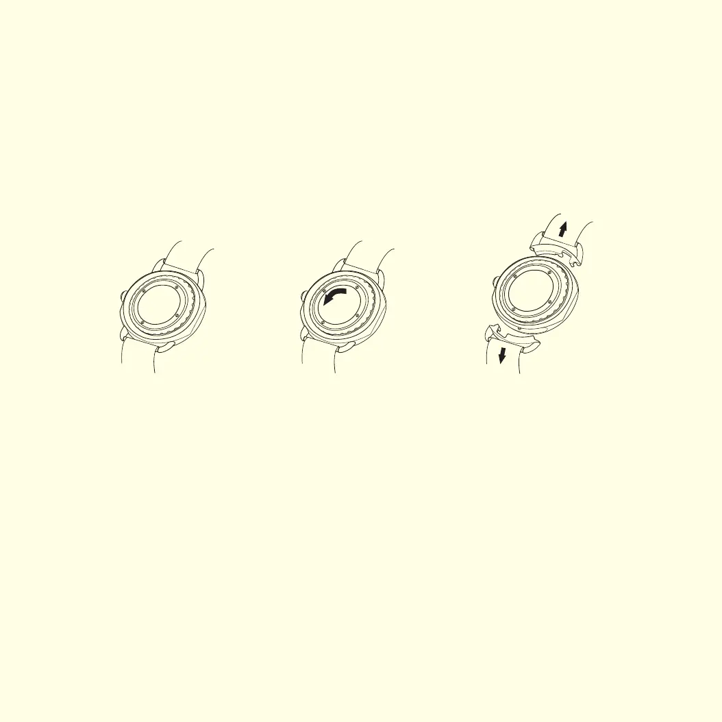 The back of this watch must be opened in order to replace the strap, following the procedure below: