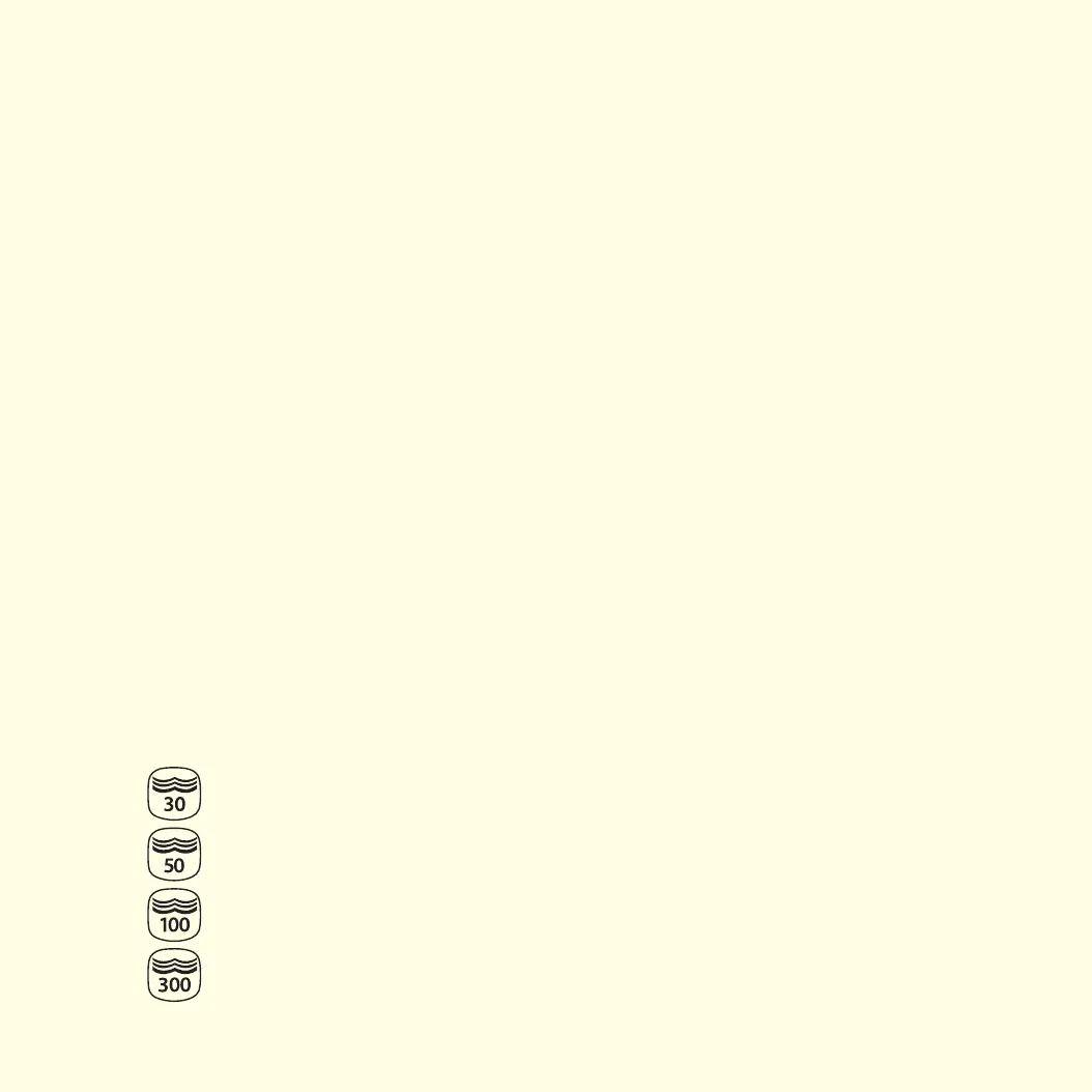 A watch's water resistance cannot be guaranteed indefinitely. It may be affected by ageing of the gaskets or acciden-