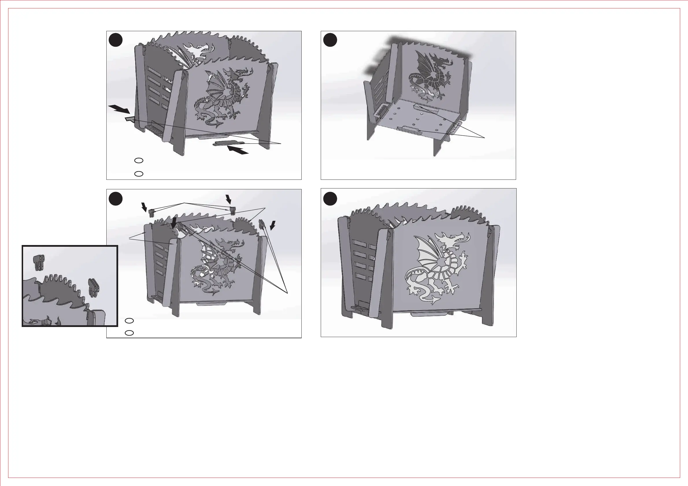 Place the locks (D) in the holes at the bottom of the fire