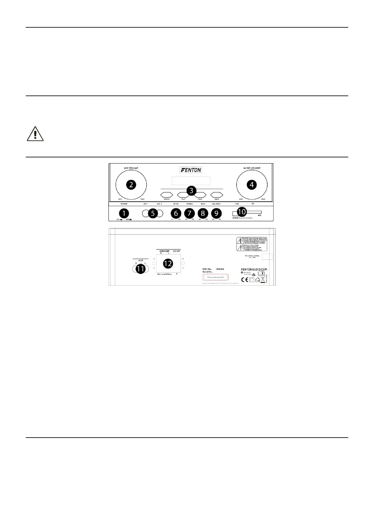 11. Aux-ingang - Sluit een stereosignaal zoals een CD, TAPE, Mixer enz. aan op deze ingang. Om een signaal af te