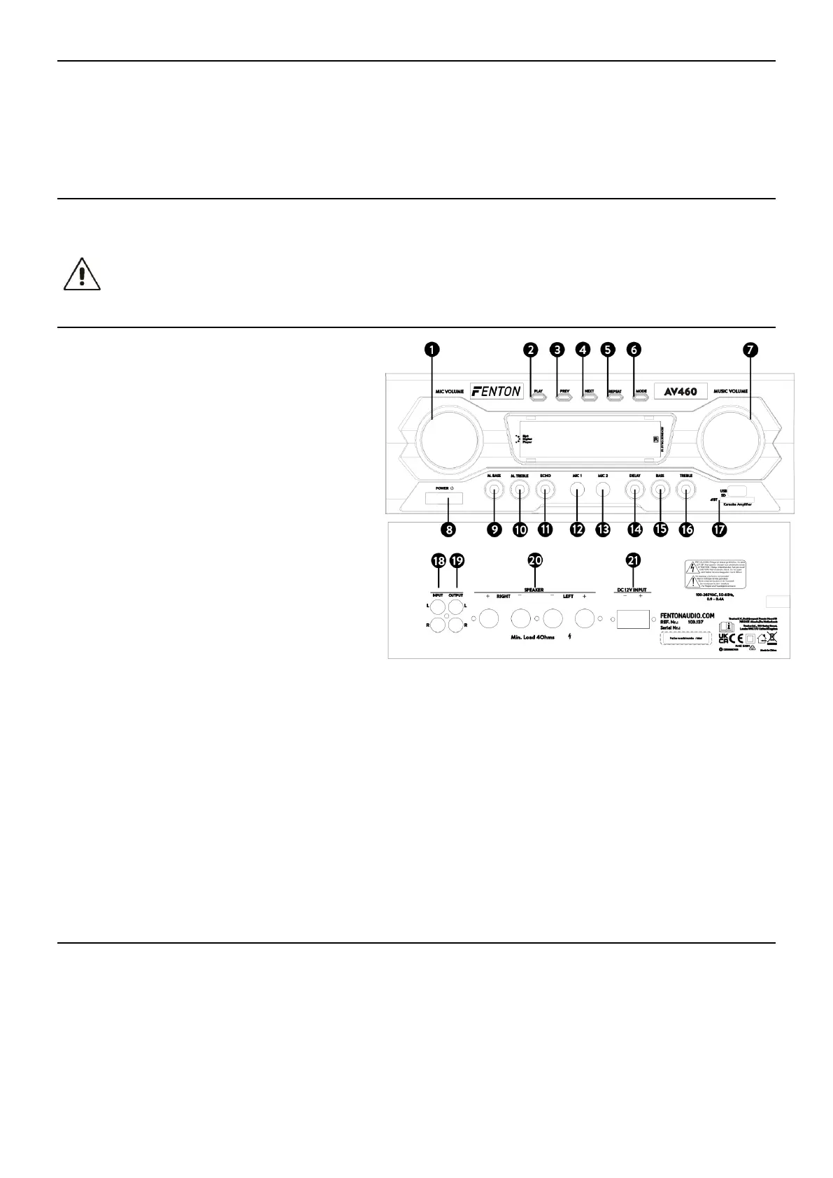 Input 6.35mm (1/4”) jack input for microphone.