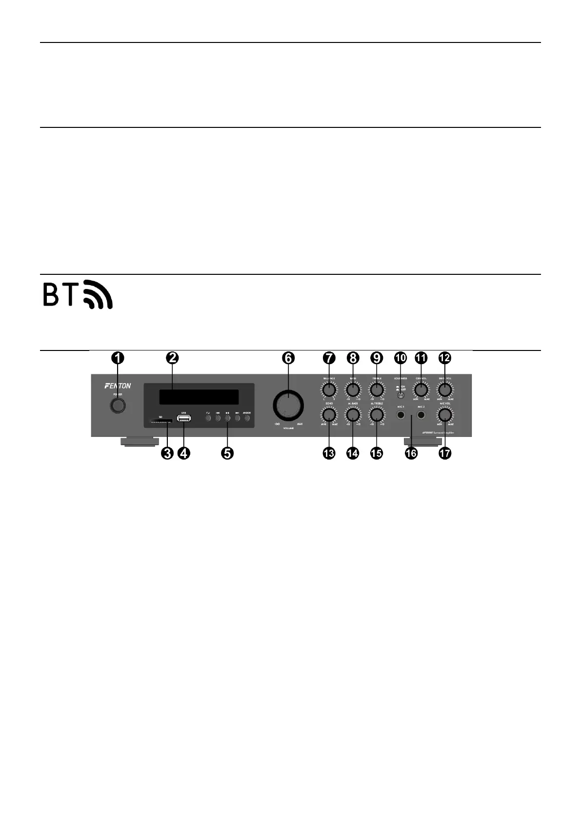 Naast de MASTER-volumeregelaars zijn er de regelaars BASS en TREBLE om de toon van het totale uitgangssignaal te