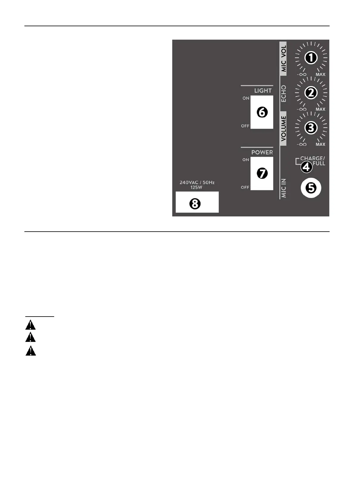 portable sound system. Then plug the other end of AC cord into AC power outlet. Turn on the unit using the main power switch