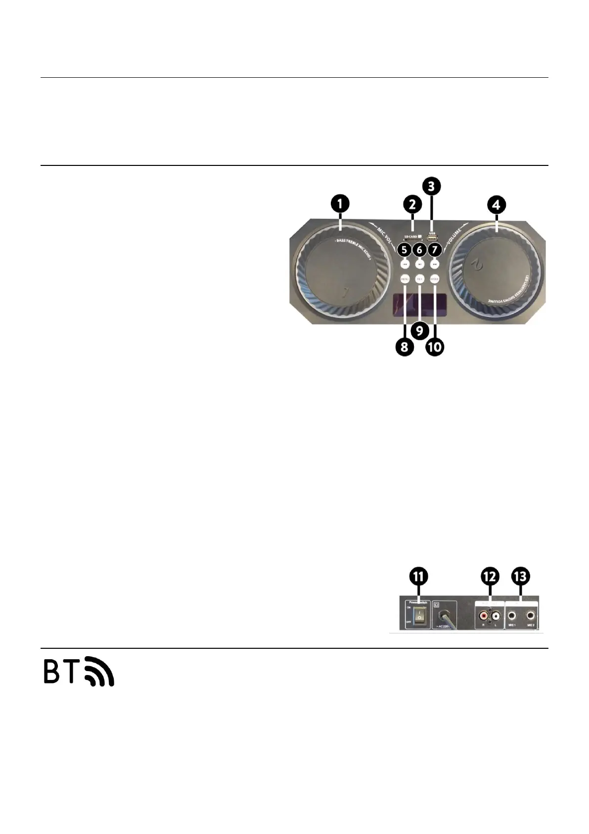 1. Réglage graves / aigus / volume micro / Echo