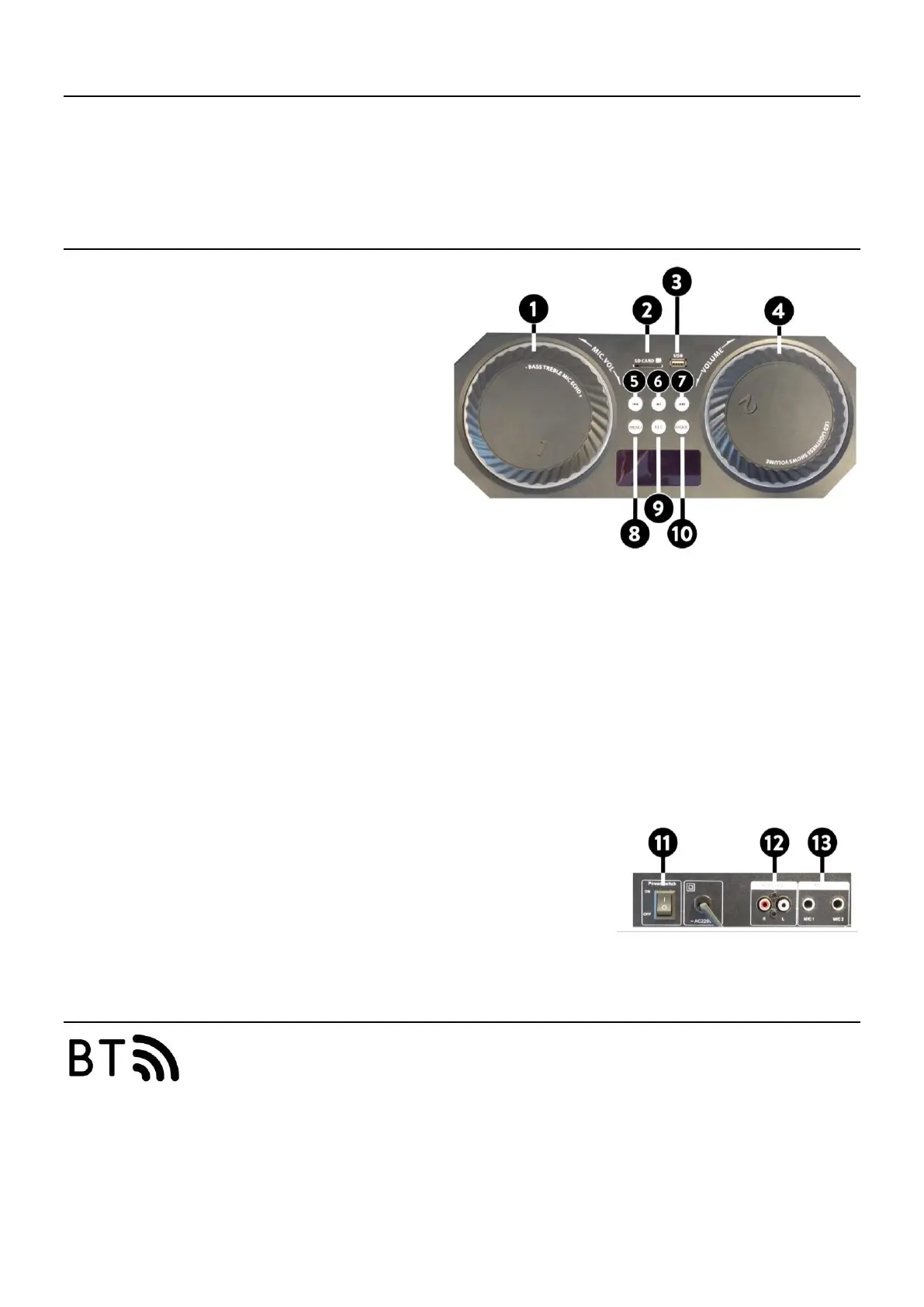 1. Bass /Treble/Mikrofone Lautstärke /Echo regler