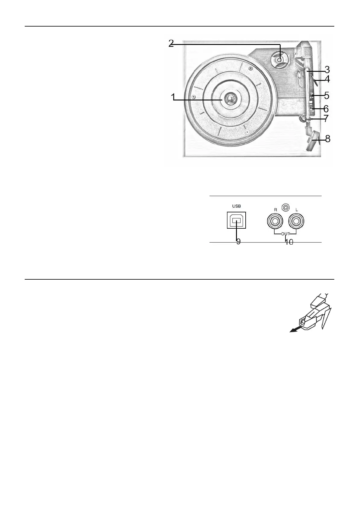 3. Place a vinyl record on the turntable platter and select the desired speed (33/45RPM) according