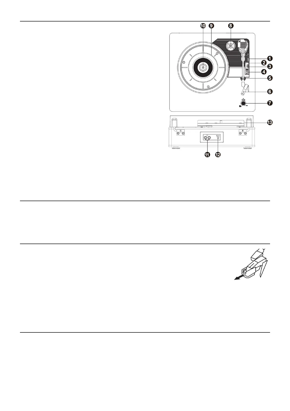 the record. NOTE: when playing a 45RPM record, use the included 45RPM adapter.