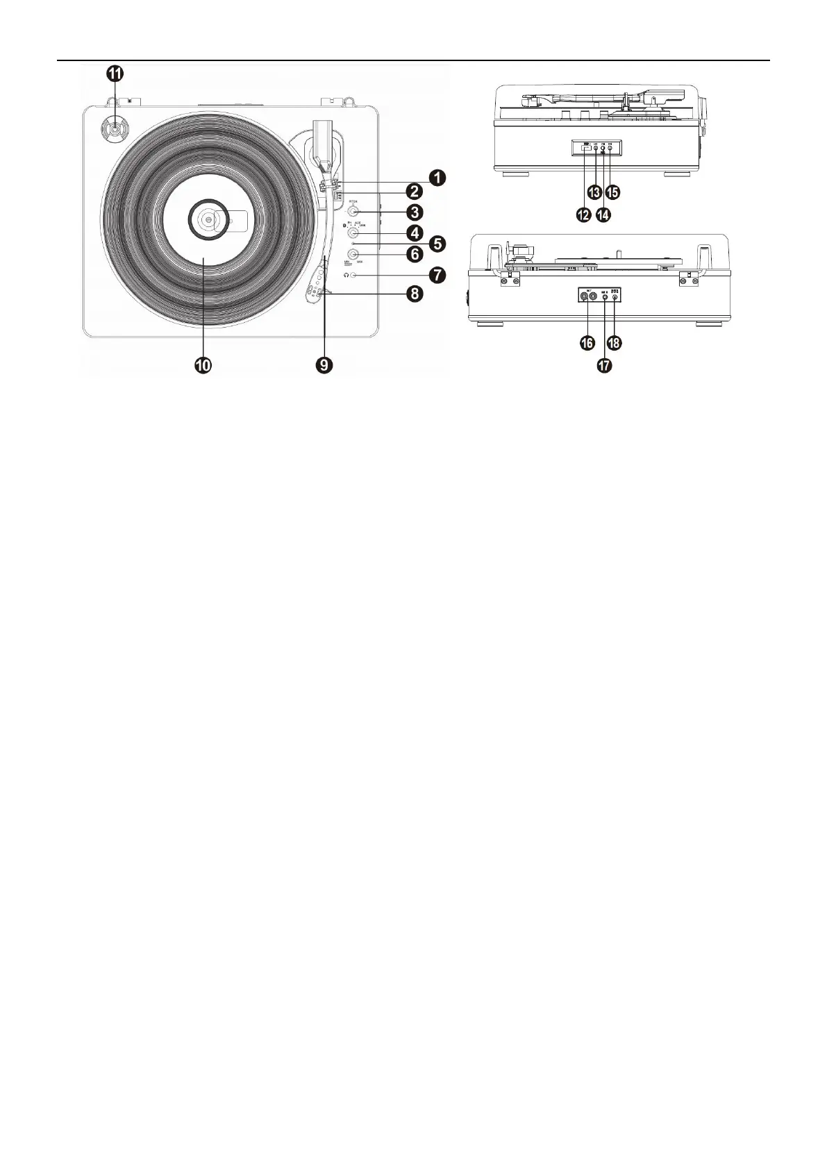The sound signal from long-playing record is sent to this line output. Connect this signal to the line input of an such as an