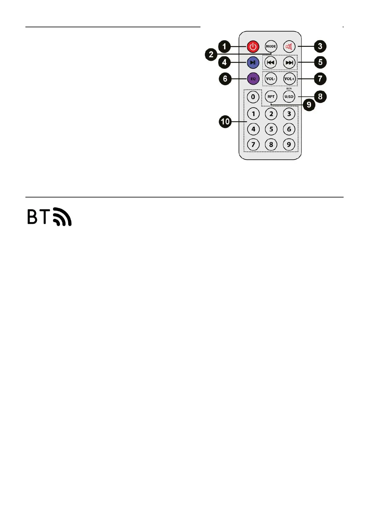 Drücken Sie diese Taste um zwischen den Modi USB/SD, BT