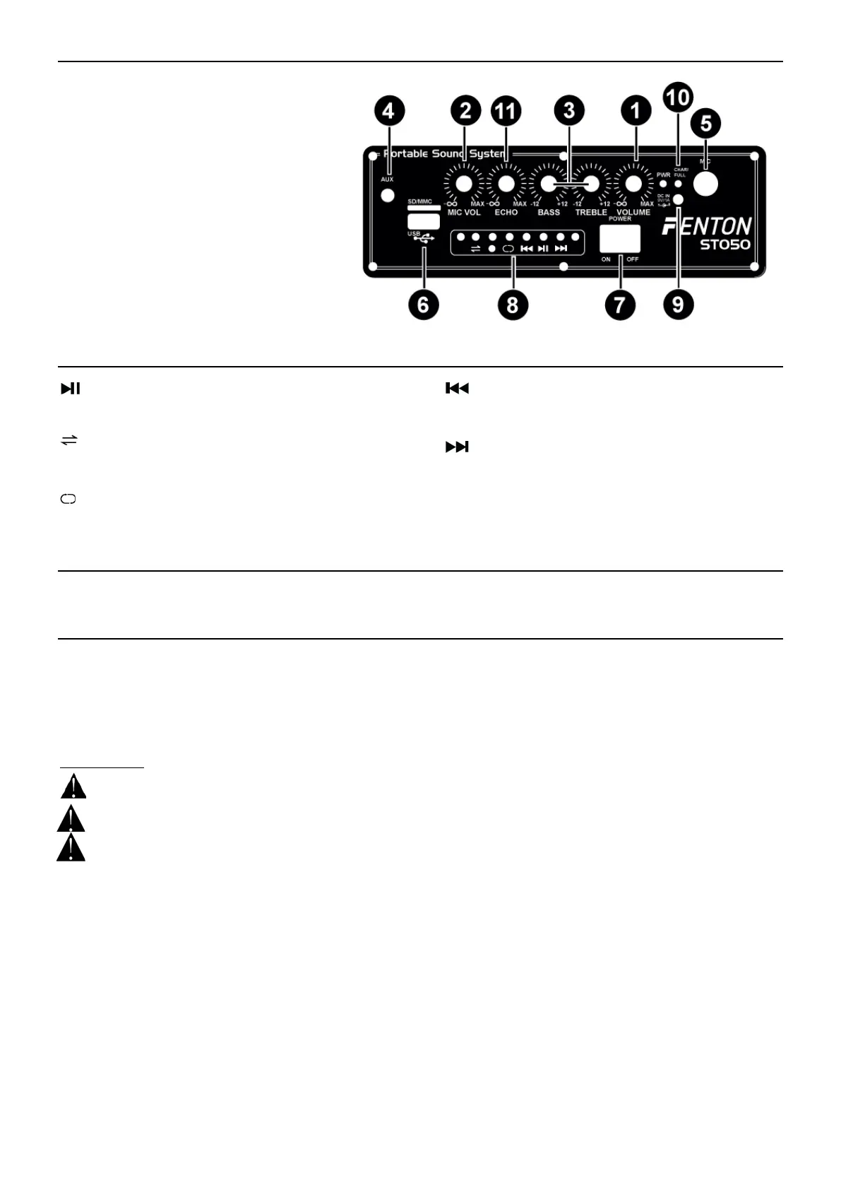 MP3/AUX/BT-MODE: Druk op de toets om te