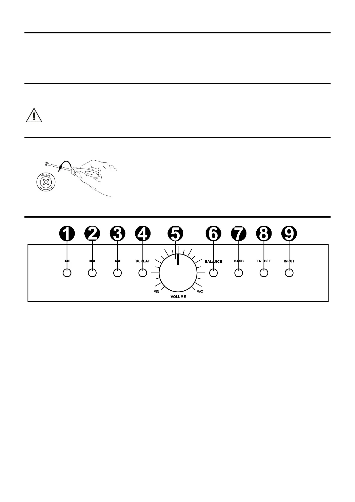 8. AIGUS: Appuyez sur ce bouton et tournez le bouton de volume pour régler la sortie des aigus.