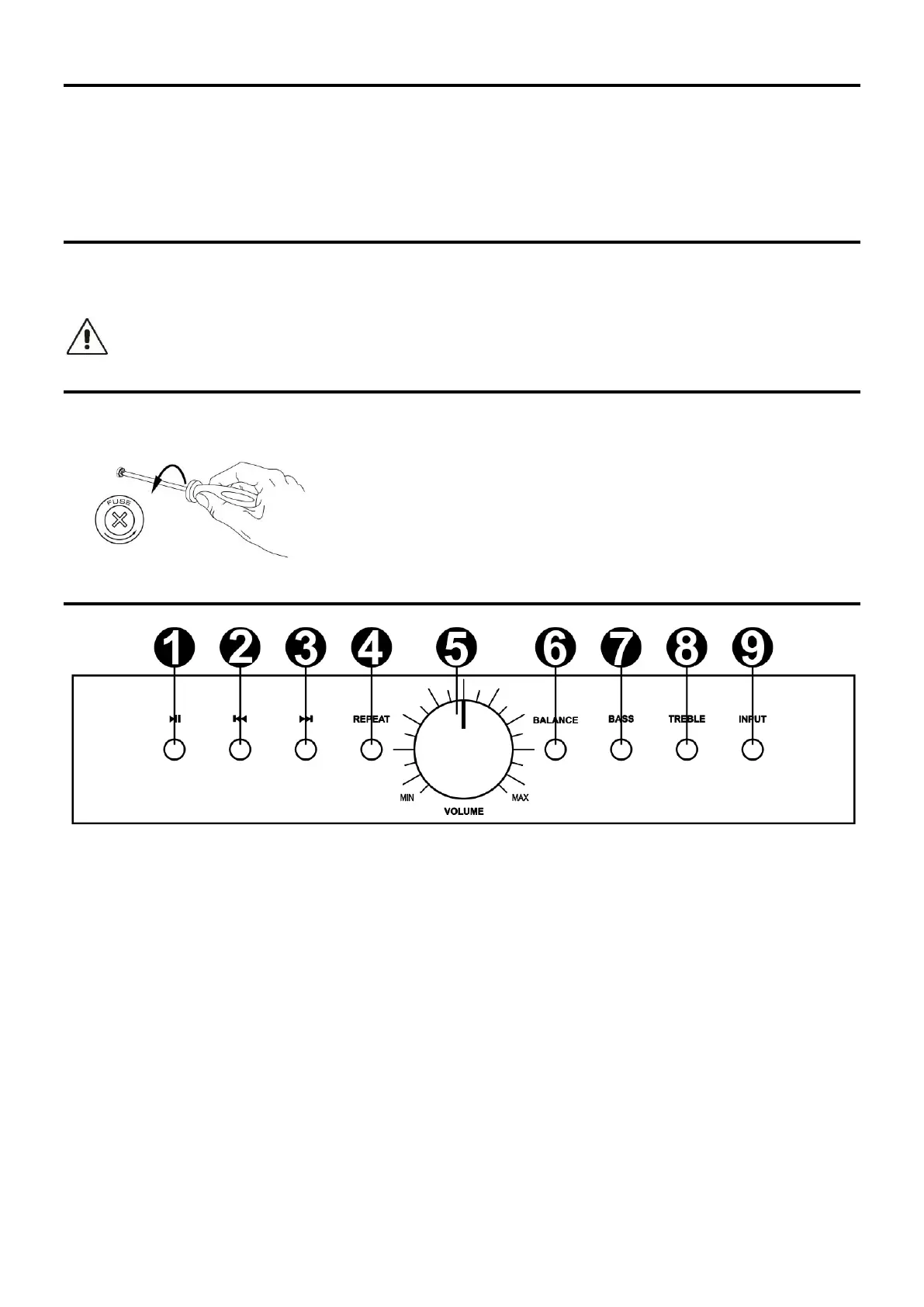 8. TREBLE: Druk op deze knop en draai aan de volumeknop om het trebleniveau aan te passen.