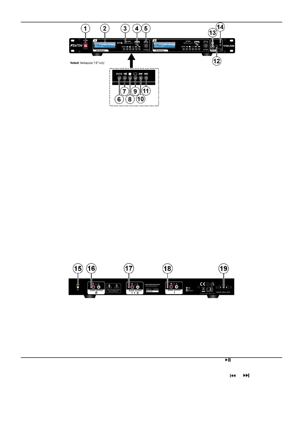 Note : Mediaplayer 1 a uniquement la fonction BT, utilisez Mediaplayer 2 pour enregistrer la musique depuis le BT.