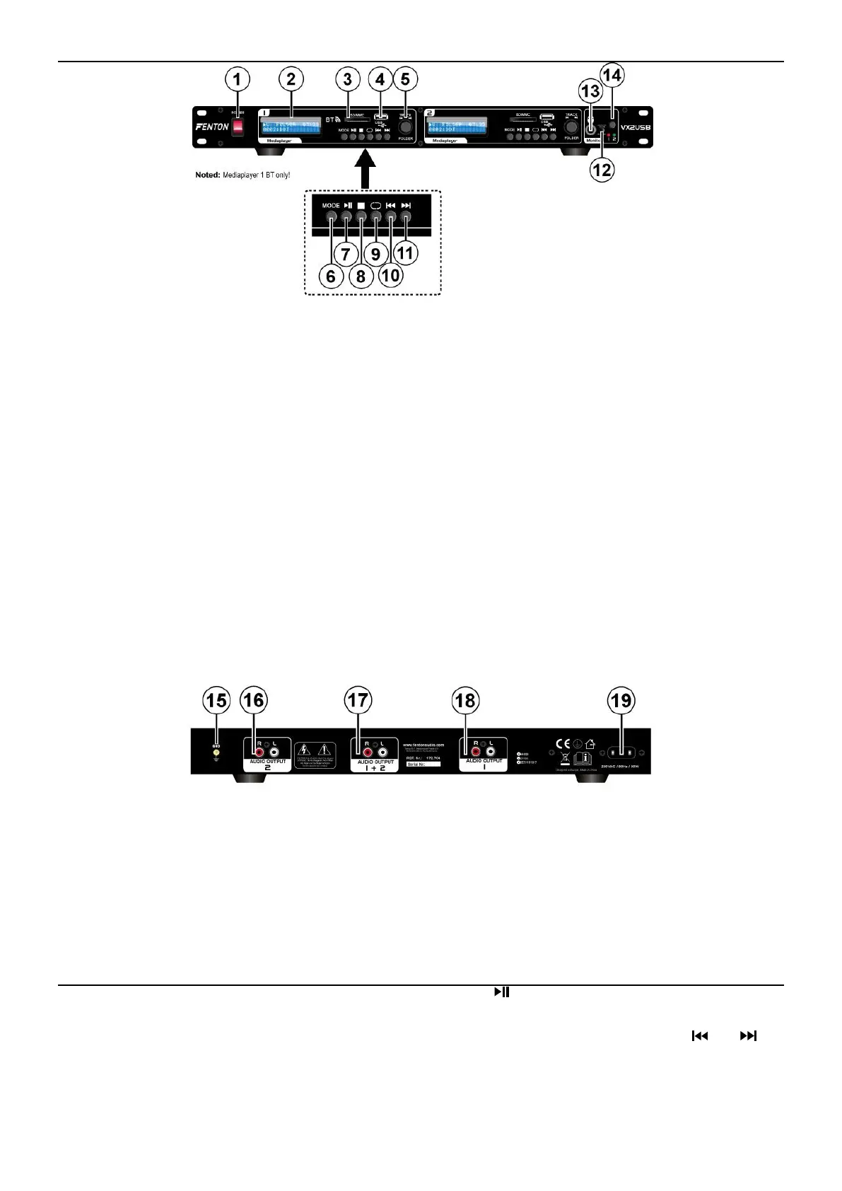 Hinweis: Media Player 1 hat nur BT Funktion, verwenden Sie Mediaplayer 2 bei Aufnahme von Musik via BT.