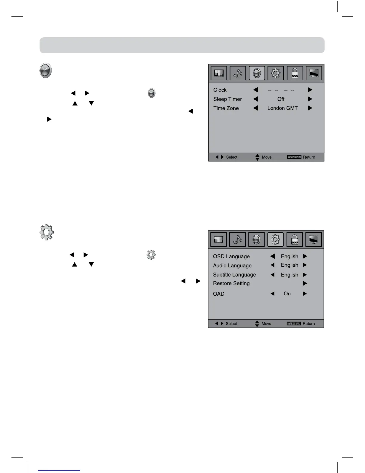 or button toselect the options (Clock,