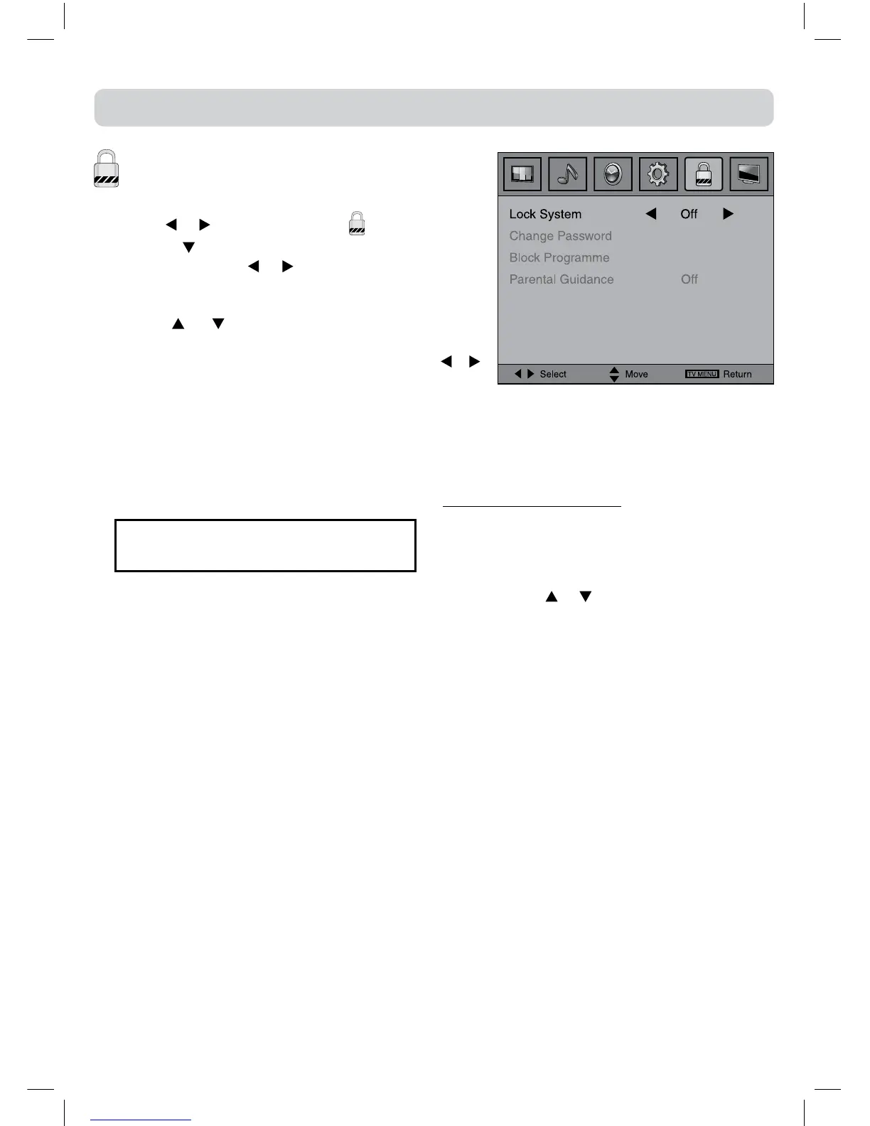 4.Usethe or buttontoselecttheoptions(Lock