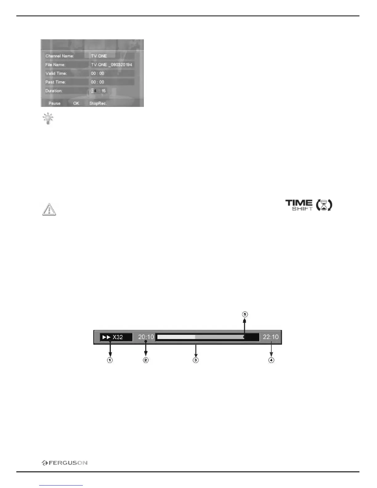 receiver Ferguson is in Time Shifting mode, it will continuously record the source from terrestrial into