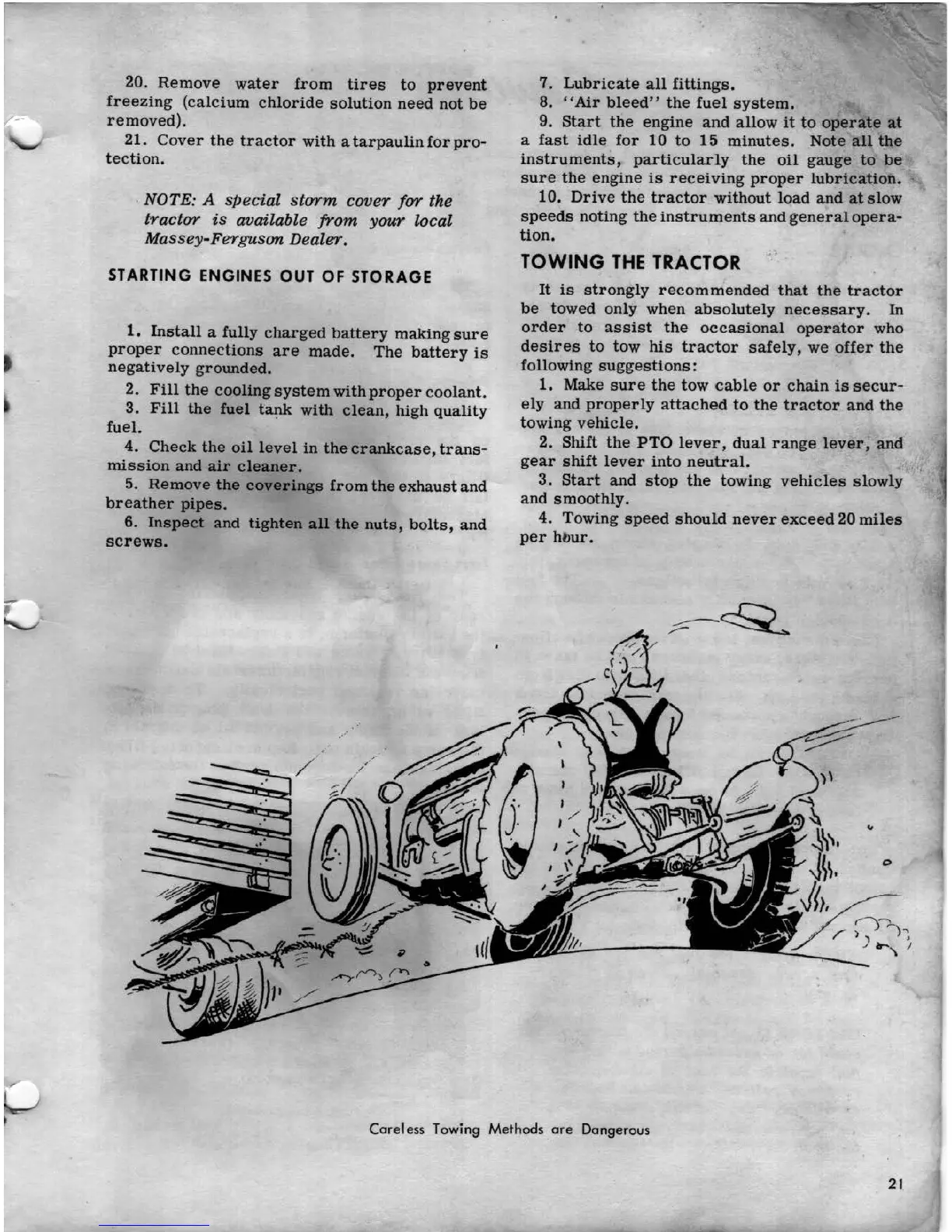 Ferguson MF 65 - STARTING ENGINES OUT OF STORAGE; SAFE TOWING PRACTICES