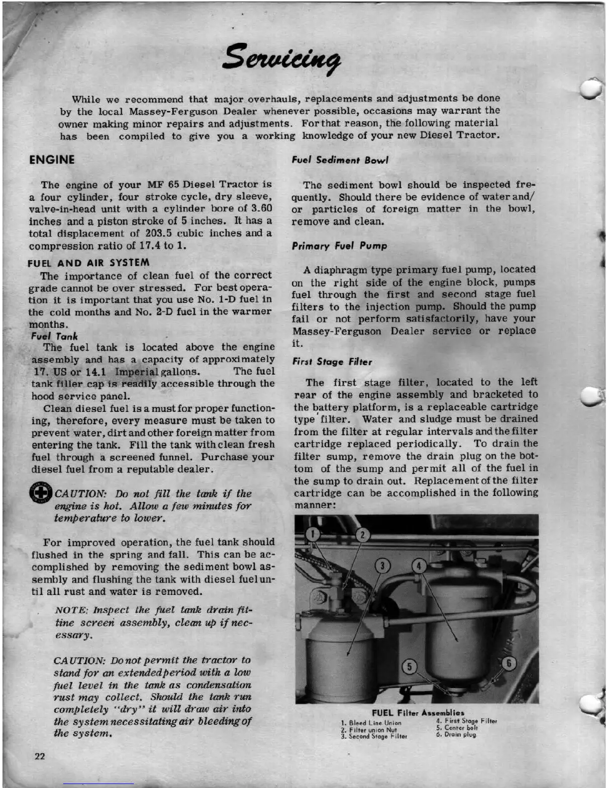 Ferguson MF 65 - Servicing; ENGINE AND FUEL SYSTEM SERVICING
