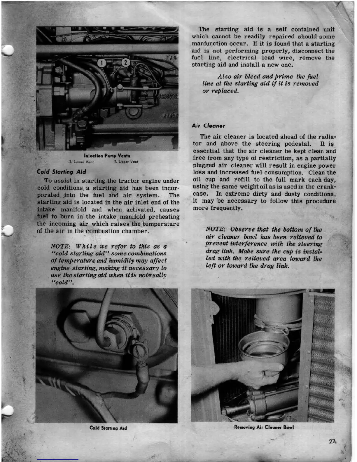 Ferguson MF 65 - Cold Starting Aid; Air Cleaner