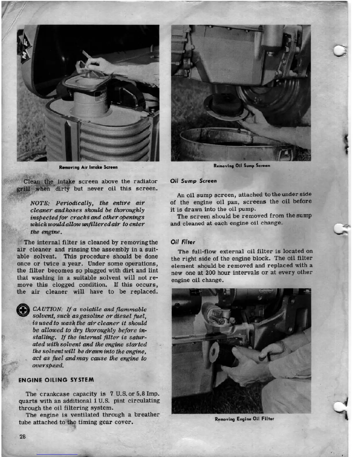 Ferguson MF 65 - Engine Oiling System; Oil Sump Screen; Oil Filter
