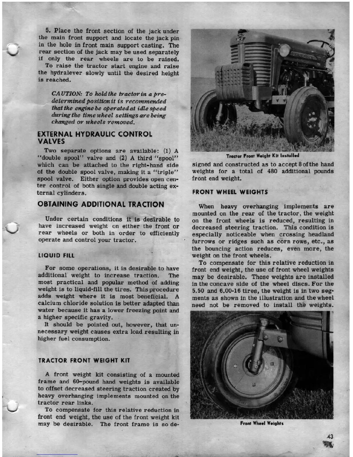 Ferguson MF 65 - External Hydraulic Control Valves; Obtaining Additional Traction; Liquid Fill; Front Wheel Weights