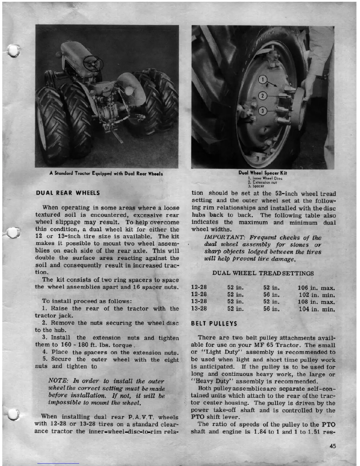 Ferguson MF 65 - DUAL REAR WHEELS AND BELT PULLEYS