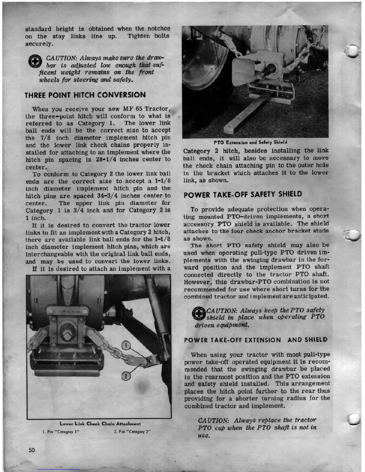 Ferguson MF 65 - Three Point Hitch Conversion; Power Take-Off Safety Shield; Power Take-Off Extension and Shield