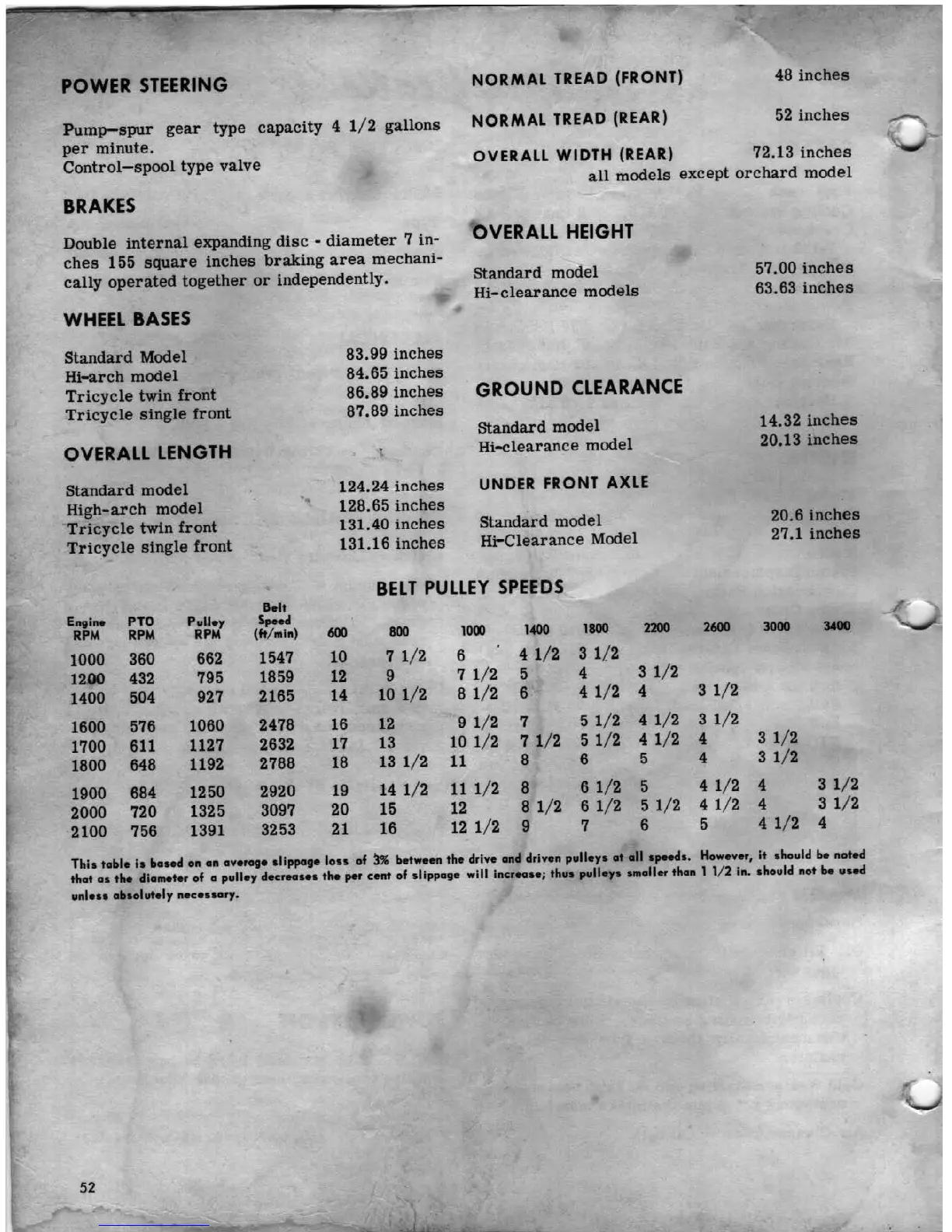Ferguson MF 65 - TIRE SIZES AND CLEARANCES