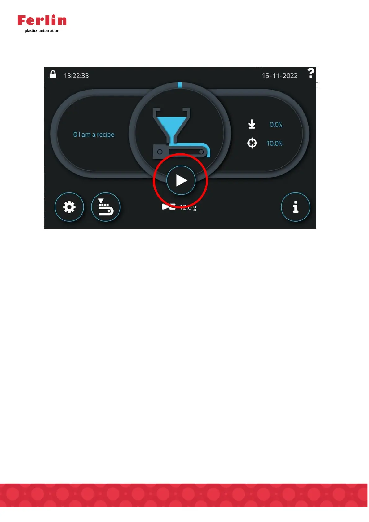 This turns the start button into a stop button. The Ferlin One can be stopped by pressing this button.