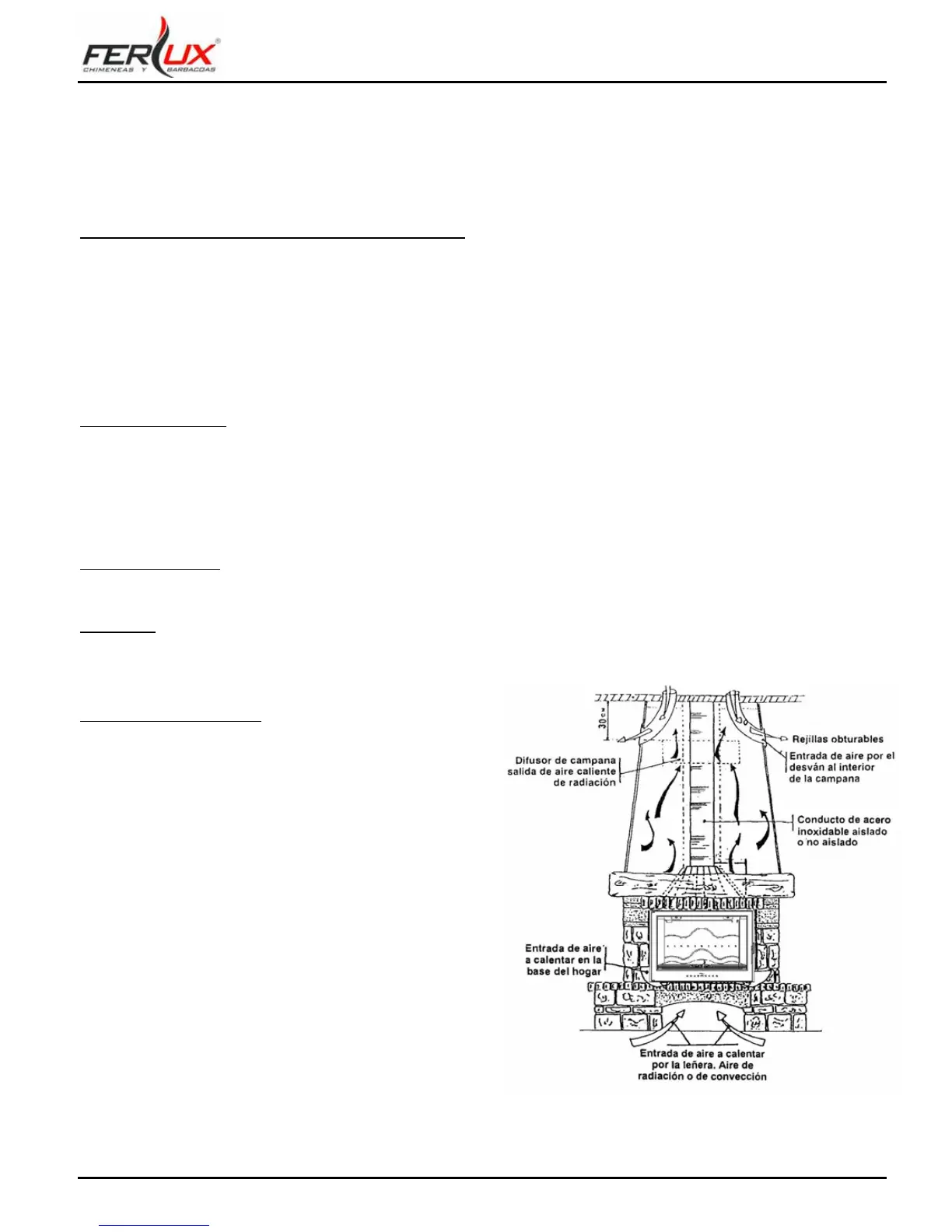 Se aconselha a instalação de um sistema de alarme de sobre temperatura, sempre que a mesma ultrapasse os 90ºC, como consequência de um excesso de carga de lenha.