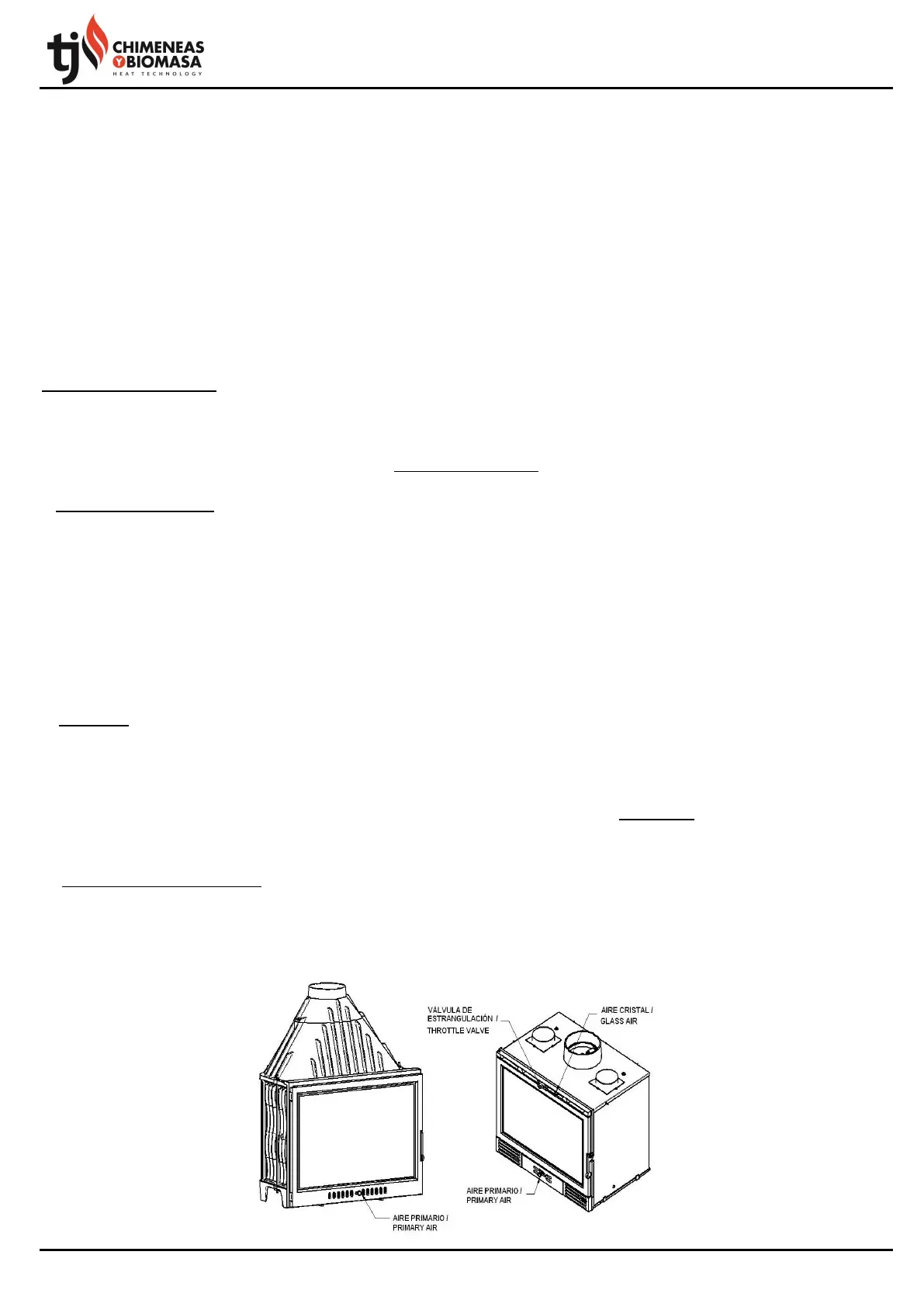 La regulación de la combustión se consigue gracias al regulador de aire de entrada primaria dispuesta en el frontal del hogar. En él podrán diferenciarse las