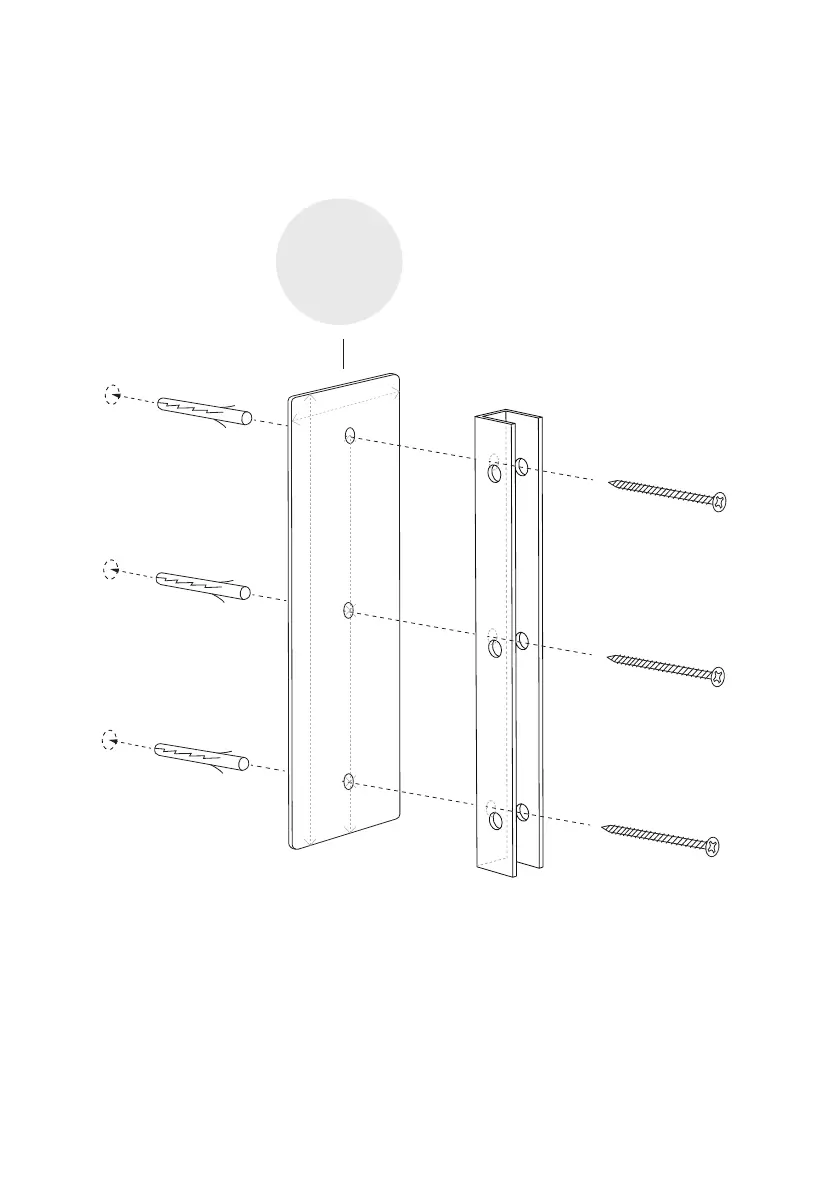 Mount the wallbase to the wall by using 3 wallplugs and the 3 longer screws.