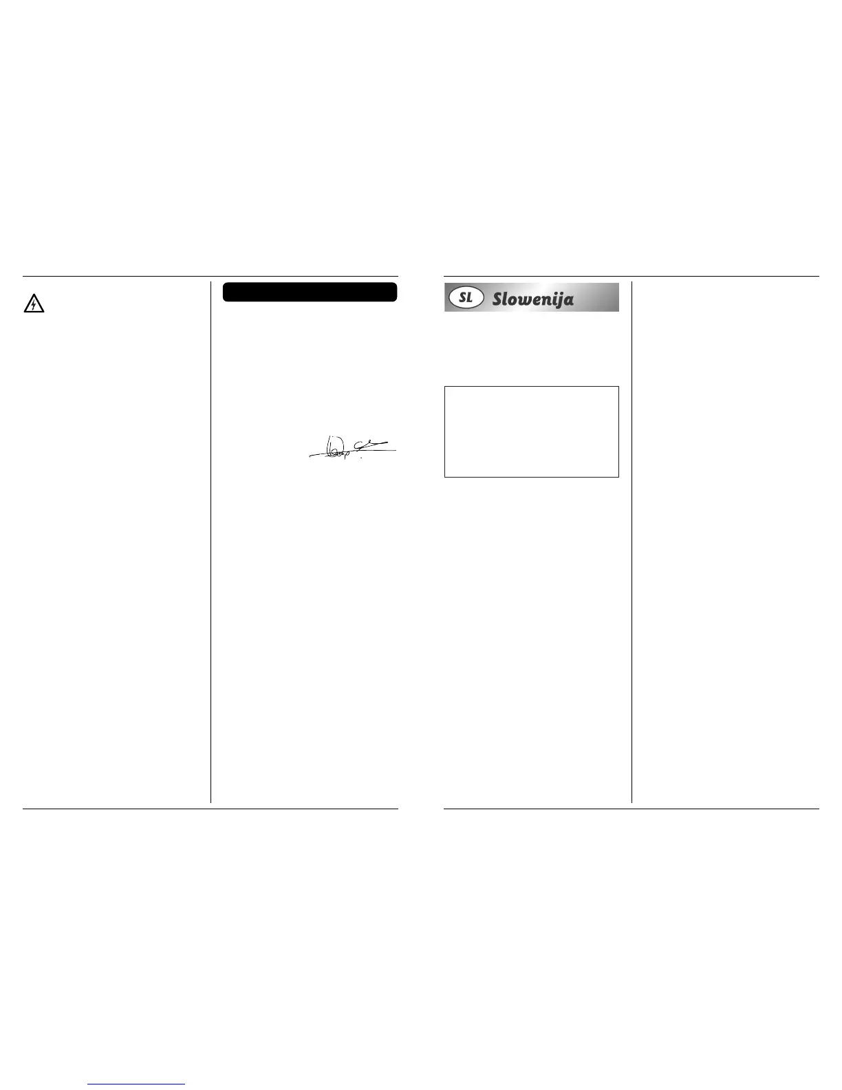 Opozarja na nevarnost električnega udara.