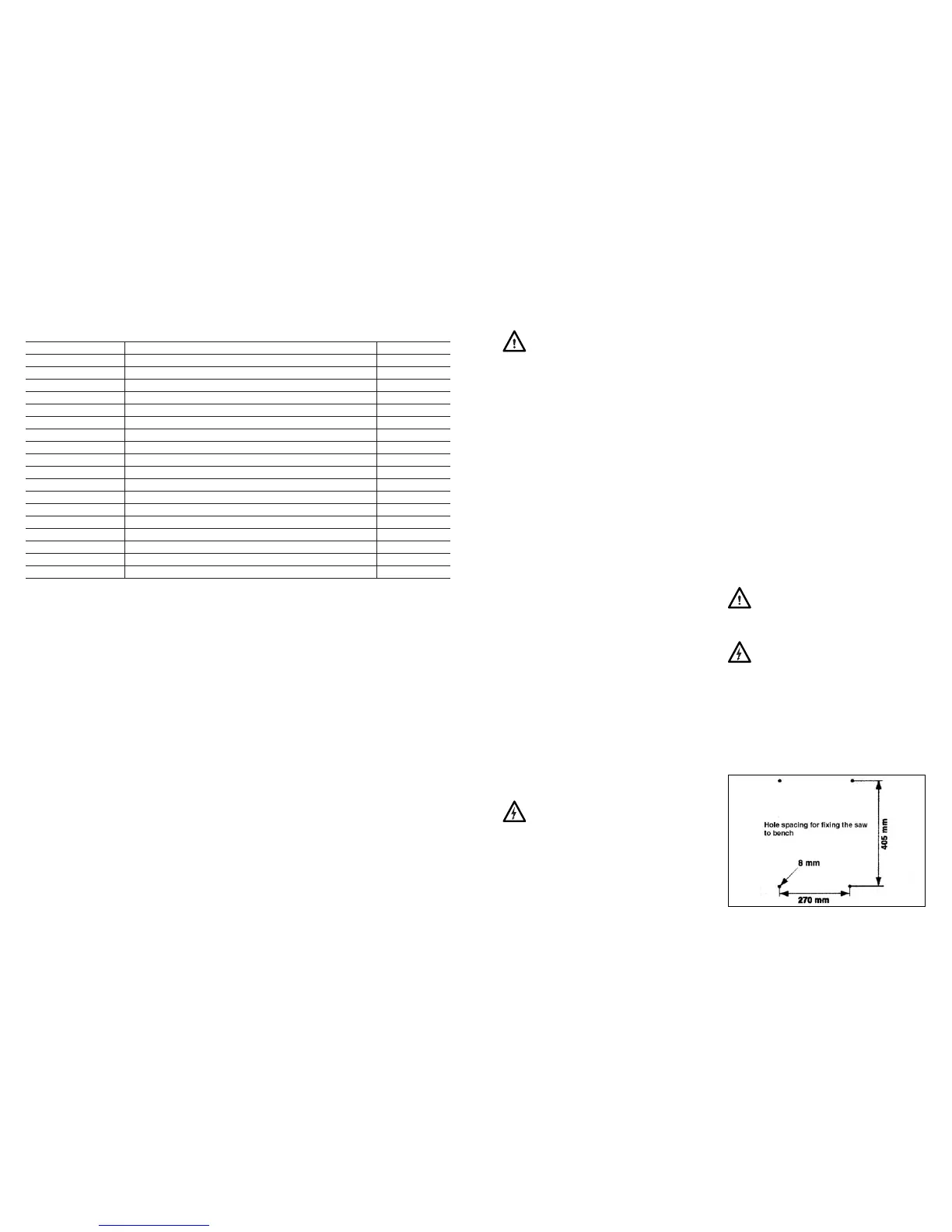 • The holes in the flanges of the saw base are for fixing