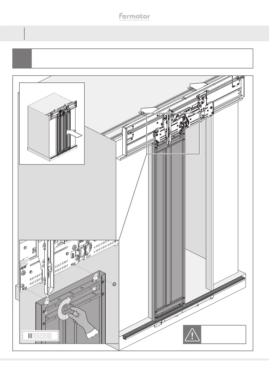 Once regulation supports are assembled in place, hang the panels on the carriages but also do not tighten them.