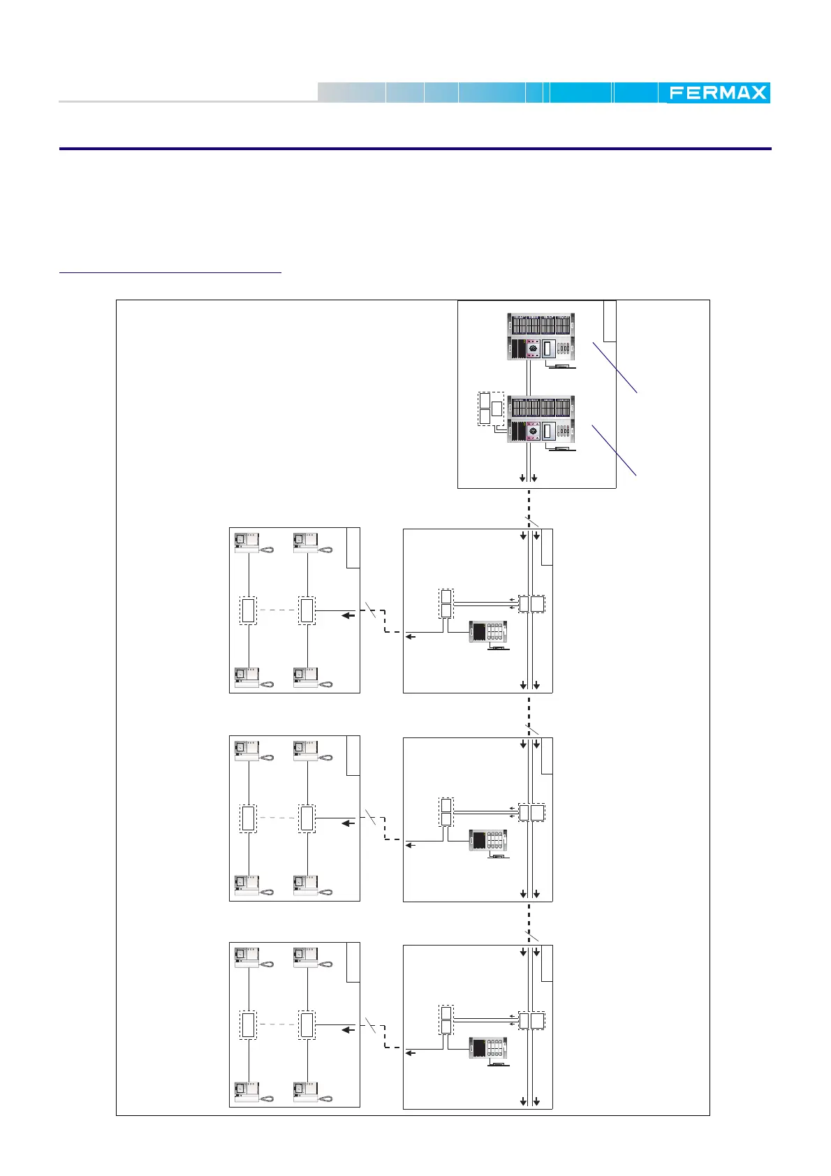 2 General Entrances with video to 3 Interior Blocks with 1 Audio Panel in each one.