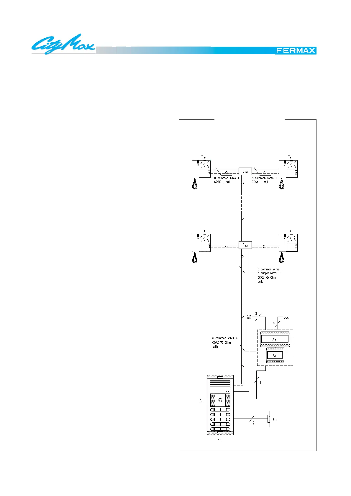 General diagram for video door phone installations with secret communication in buildings with one entrance.